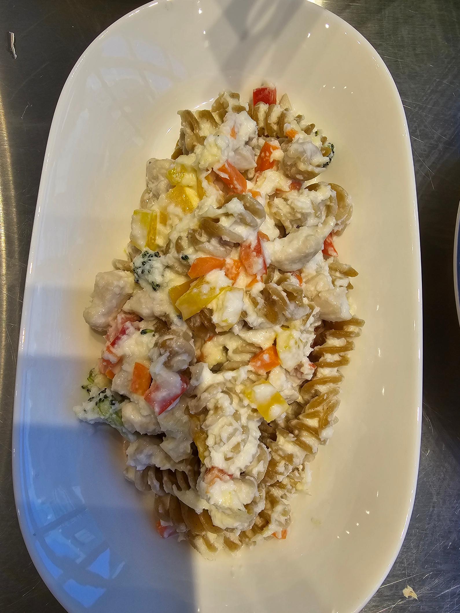 재료: 통밀푸실리, 닭가슴살, 당근, 파프리카, 브로컬리, 버섯, 유당제거우유, 아기치즈,